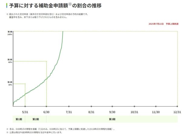 また、予算の消化状況はホームページ上で確認できますので、常に申請状況の推移を把握しておくのが良いでしょう。